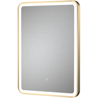 nuie LQ702 Mirrors Modern Bathroom Wall Hung Framed Touch Sensor LED Mirror with Demister, 700mm x 500mm, Brushed Brass