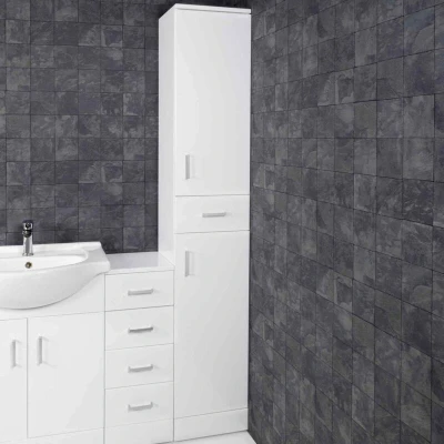 General description Discover the essential storage your bathroom has been craving with the Nuie Mayford Tall Boy Unit. Ideal for bathrooms with abundant ceilings but limited floor space, this tall unit features two elongated cupboards separated by an ample-sized drawer. Boasting a gloss white finish, it is perfect for contemporary bathroom designs and is crafted from solid and durable MFC construction, with a shelf in each cupboard. This unit keeps dangerous products away from small children while providing enough space for personal items without leaving anything on show. Supplied fully assembled, you only need to position it in your desired location. Technical specifications Height: 1902mm Width: 350mm Depth: 300mm Weight: 39.00 Kg Material: Moisture-resistant MFC Finish: Gloss White Doors: 2 Drawers: 1 Shelves: 2 Installation Delivered fully assembled for easy positioning. Extra care must be taken during installation to avoid damaging the fittings. Usage Perfect for storing personal