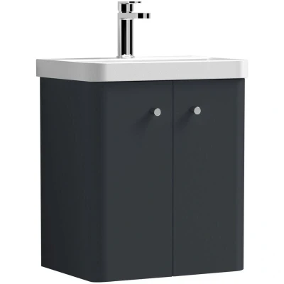 nuie Modern Bathroom Wall Hung 2 Door Vanity Unit with Ceramic Basin, 500mm, Soft Black