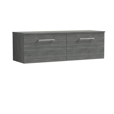 nuie Modern Bathroom Wall Hung 2 Drawer Double Vanity Unit with Colour Worktop, Anthracite, 1200mm
