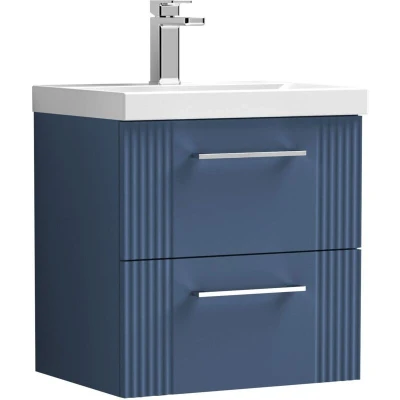 nuie Modern Bathroom Wall Hung 2 Drawer Part Fluted Vanity Unit with Thin Edge Ceramic Basin, Satin Blue, 500mm