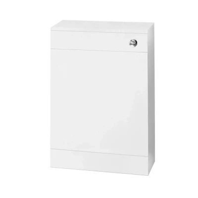 ManoManoGeneral description Designed to create a minimalist bathroom by concealing the cistern, the Nuie Mayford WC Unit is perfect for smaller bathrooms and cloakrooms. With a depth of just 202mm, this floor-mounted unit is finished in a high gloss white, complementing the rest of the range. The rigid cabinet construction is made from 18mm thick moisture-resistant MDF, ensuring a strong and durable unit that enhances the look of any contemporary bathroom. Technical specifications Height: 770mm Width: 500mm Projection: 202mm Weight: 15.28 Kg Material: MFC Painted Gloss Finish: Gloss White Cistern: 6/4 litre chrome push button concealed cistern included Installation Extra care must be taken during installation to avoid damaging the fittings. Usage Toilet pan and seat sold separately (available in our store). Not suitable for comfort height toilets. Other information 5 Year Guarantee against faulty workmanship or materials (excluding serviceable parts), provided installation and care follow the