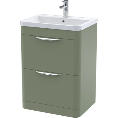 Nuie Parade Satin Green 600mm 2 Drawer Vanity Unit and Ceramic Basin FPA801A