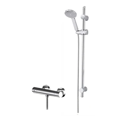 This sleek and modern shower bundle from nuie, brings together high quality pieces manufactured from brass in a chrome finish, and round designs. The bundle includes a thermostatic bar valve and slide rail kit with single function handset, and it saves you money and time, for your brand new shower. The wall hung round bar valve has thermostatic temperature control, and anti scald technology to protect in case of water shut down. The patented Valquest cartridge is made in Great Britain, and can be fitted both horizontally or vertically. The bar valve has a sleek minimalist round design, and a bottom central outlet. With ceramic disc technology, for a smoother operation and longer valve life. The wall mount adjustable slide rail kit makes showering more accessible with it's adjustable height. Comes with a single function shower head and hose, in a light chrome finish, and the round design fits with the bar valve for consistency in your shower design, and with the bar valve, it is all the essentials you need for a new shower. DIMENSIONS - BAR VALVE - H: 55mm, W: 275mm, D: 72mm. SLIDE RAIL KIT - H: 740mm, W: 96mm. 5 year manufacturer's guarantee, Weight: 6.2390820146 Pounds, Manufacturer: Nuie