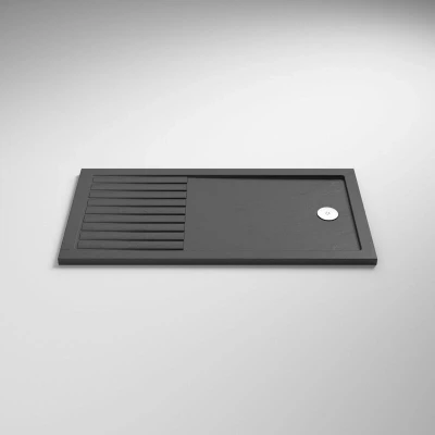 General description The Nuie Pearlstone Grey Slate Effect Rectangular Walk-In Shower Tray measures 1600mm x 800mm and offers an ultra-modern design upgrade to traditional white shower bases. Its visually stunning grey shade, combined with a slate effect texture, enhances the premium feel of the tray. This walk-in model features a flat showering area and a separate slatted drying area, making it an ideal companion for wet room glass screens. Technical specifications Tray Type: Walk-In Tray Width: 1600mm Depth: 800mm Height: 40mm Waste Position: End Core Material: Pearlstone (Mineral Stone Resin) Surface Material: Acrylic-Capped ABS Surface Texture: Slate Effect Colour: Grey Slate Weight: 54.1 Kg Manufacturer Part Number: TR711680 EAN Barcode: 5056211850915 Compatibility and accessories Requires a 90mm shower waste (not included) Compatible with an easy-plumb riser kit (sold separately) for raised height installation Installation Suitable for inset (level access) or floor mounted (low