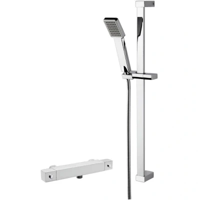 Nuie Square Thermostatic Bar Shower Valve with Slider Rail Kit Chrome