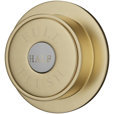 General description Whether wall hung or back to wall, our Colore Round Brushed Brass Traditional Dual Flush Push Button makes the perfect finishing touch to your toilet. The period design and brushed brass finish will add an elegant detail to an often overlooked aspect of most bathrooms. Constructed from durable ABS plastic, this clever dual flush button features a Full and Half functionality to save water and is also available in polished chrome and matt black. Technical specifications Material: Durable ABS plastic Functionality: Full and Half flush Available finishes: Brushed brass, polished chrome, matt black Compatibility and accessories Compatible with WDB12245 - Concealed Cistern (Front Entry) Model no. Also available in two distinct styles Usage Ideal for wall hung or back to wall toilets Pairs well with a concealed cistern for a complete toilet flush solution
