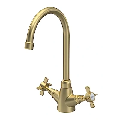 Nuie Traditional Mono Kitchen Sink Mixer Tap Dual Handle Brushed Brass