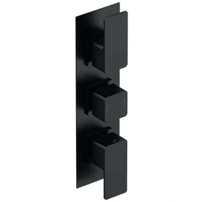 nuie WIN4TR02 Windon Modern Bathroom Concealed Square Triple Thermostatic Shower Valve, 280mm, Matt Black