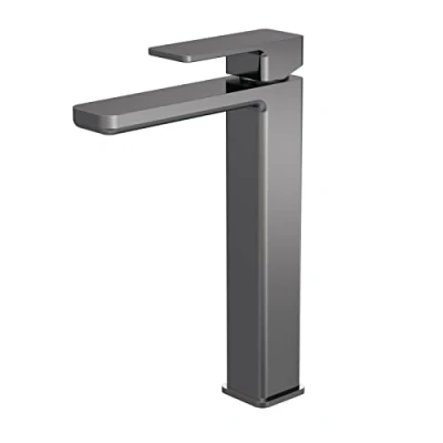 nuie WIN770 Windon Modern Bathroom Square Mono Basin High Rise Lever Handle Tap, Brushed Pewter