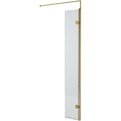 ManoManoGeneral description The Nuie 300mm x 1850mm Fluted Wetroom Hinged Return Screen with Brushed Brass Fittings combines functionality with a stylish fluted design, perfect for adding an Art Deco touch to your bathroom. This screen not only enhances the aesthetic appeal but also provides additional privacy. Technical specifications Dimensions: 300mm x 1850mm Material: 8mm toughened safety glass Fittings: Brushed brass support bar Installation During installation, extra care must be taken to avoid damaging the fittings. Other information We provide a Lifetime Guarantee against faulty workmanship or materials (excluding serviceable parts), provided they have been installed, cared for, and used in accordance with our instructions.