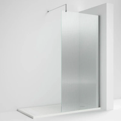 General description Fluted design ideal for infusing Art Deco elegance into your bathroom. This stunning wet room glass shower screen is perfect for a modern bathroom, offering the chance to bring the continental wet room look into your space. The screen is CE and UKCA approved and comes with a square chrome support arm, which is included with the screen. It also includes a T piece for the support arms, creating additional privacy. Technical specifications Glass Thickness: 8mm Height: 1850mm Width: 800mm Depth: 14mm Support Bar Length: 1000mm (can be cut to size) Weight: 34 Kg Adjustment Range: 775-793mm Material: Glass Profile Material: Aluminium Profile Finish: Polished Chrome Other information Shower Tray and Waste not included Manufacturer Part Number: WRFL18580 EAN Barcode: 5056462661209