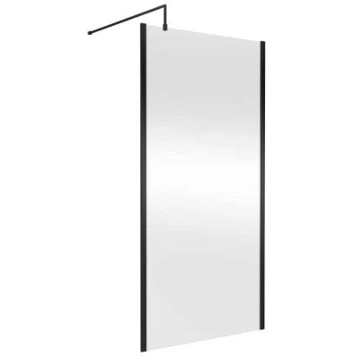 nuie WRSCOBP10 Modern Bathroom Outer Framed Wall Fixed Wetroom Screen with Support Arm, 1000mm, Satin Black