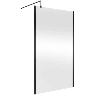 nuie WRSCOBP12 Modern Bathroom Outer Framed Wall Fixed Wetroom Screen with Support Arm, 1200mm, Satin Black