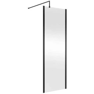 General description Supplied complete with Wetroom Screen, Wall Channel, Decorative Profile Undrilled, and Support Bar. This product features a modern design with 8mm toughened safety glass, making it both stylish and durable. The screen is reversible for easy left- and right-hand corner installation and can be coordinated with other glass panels for a bespoke shower enclosure. Technical specifications Glass Thickness: 8mm Glass Height: 1850mm Glass Width: 700mm Weight: 31.97 Kg Adjustment Range: 675-695mm Profile Material: Aluminium Profile Finish: Matt Black Glass Style: Clear Shape: Straight Installation During installation, extra care must be taken to avoid damaging the fittings. A fixing bracket with a rotating joint is included for secure installation. Usage This wetroom screen is designed for domestic use and is suitable for corner installations. It is important to follow the manufacturer's instructions for installation and care to maintain the lifetime guarantee against faulty