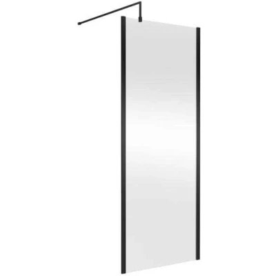 nuie WRSCOBP80 Modern Bathroom Outer Framed Wall Fixed Wetroom Screen with Support Arm, 800mm, Satin Black