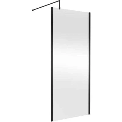 nuie WRSCOBP90 Modern Bathroom Outer Framed Wall Fixed Wetroom Screen with Support Arm, 900mm, Satin Black