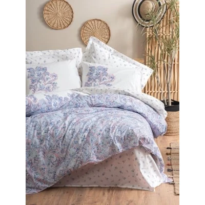 Nuit Des Rêves Ranforce Double Quilt Cover Set (200 x 200 cm), 100% Cotton, White/Blue/Orange, 2 Pillowcases (80 80 Machine Washable, Elegant Pigment Printing