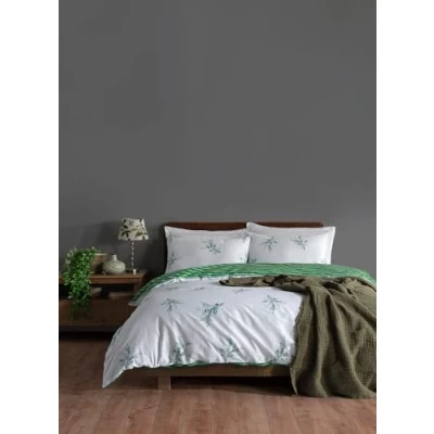 Nuit Des Rêves Ranforce King Quilt Cover Set (200 x 220 cm), 100% Cotton, White & Green, 2 Pillowcases (80 80 Machine Washable, Elegant Pigment Printing