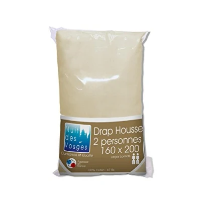 Nuit des Vosges Cotoval Plain Cotton Fitted Sheet for Adjustable Beds, Cotton, natural, 60x120