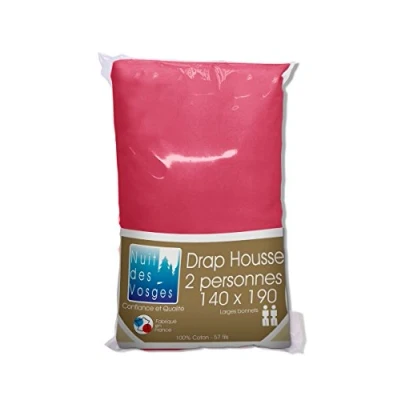 Nuit des Vosges Cotoval Plain Cotton Fitted Sheet for Adjustable Beds, Cotton, raspberry, 160x200