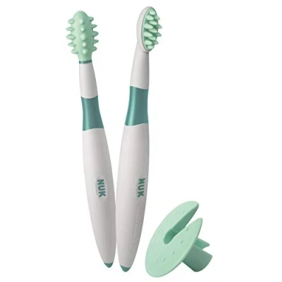 Gradually introduce to the regular brushing your teeth Level 1: NUK cleaning pen with additional biting effect for targeted gum massage during teething Level 2: NUK cleaning trainer with soft, bite-resistant rubber blades for the first gentle cleaning Guard ring prevents over insertion and can be used as a pedestal