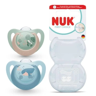 FOR HEALTHY TEETH & JAW DEVELOPMENT*: NUK soothers offer peace of mind for parents, with an orthodontic shape that has the least impact on baby's natural oral development SOOTHES 99% OF BABIES**: Meaning less stress for parents and babies when soothing is required GENTLE ON DELICATE SKIN: Clever cut outs increase airflow MICROWAVE-SAFE TRAVEL CASE: For easy cleaning on the go MADE IN GERMANY: Crafted with care, made with high-quality materials and thoughtful design