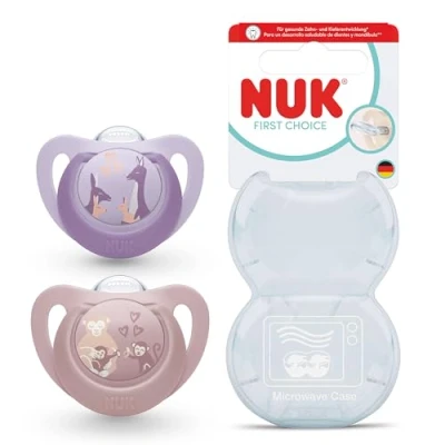 FOR HEALTHY TEETH & JAW DEVELOPMENT*: NUK soothers offer peace of mind for parents, with an orthodontic shape that has the least impact on baby's natural oral development SOOTHES 99% OF BABIES**: Meaning less stress for parents and babies when soothing is required GENTLE ON DELICATE SKIN: Clever cut outs increase airflow MICROWAVE-SAFE TRAVEL CASE: For easy cleaning on the go MADE IN GERMANY: Crafted with care, made with high-quality materials and thoughtful design