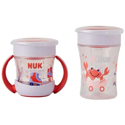 The right cup for every stage of development: with the NUK Magic Cup and Mini Magic Cup, learning to drink becomes a magical breeze Drink from all sides: children can drink from all sides with the 360° drinking rim Leak-proof: silicone disc automatically seals the attachment inside and prevents spills Drink without settling: soft silicone rim with ventilation valve regulates the flow of drinks Easy to hold: the contoured shape of the Magic Cup is ideal for little hands; ergonomic handles on the mini magic cup encourage babies to grasp