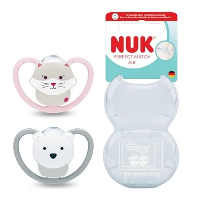 NUK Perfect Match Air Baby Dummy 6 18 Months Orthodontic Soothers That Promote Flow & Prevent Drool Rash 95% Acceptance** Bear Cat 2 Count