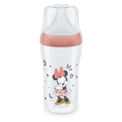 NUK Perfect Match Baby Bottle 3+ Months Adapts to Baby's Palate Temperature Control Anti Colic Vent 260 ml BPA Free Medium Silicone Teat Disney Mickey Mouse [Red]