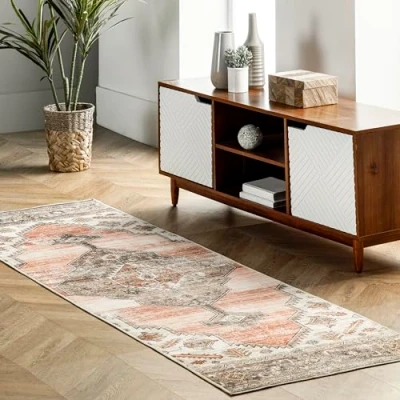 nuLOOM Runner Rug, Polypropylene, Gracie Distressed Medallion Peach, 3 x 8 Feet