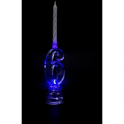 Number 6 LED Light Up Flashing Colour Changing Holder With 4 Wax Cake Candles Birthday Anniversary Table Decorations