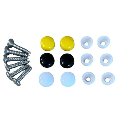Pack of 6 high quality screws and cover caps for fixing number plates to vehicles, caravan's, trailers etc. This is a premium kit featuring strong watertight, clip-on style screw caps and A2 grade stainless steel screws. The screw caps are a two piece design and offer advantages over the cheaper hinged push-in style. They form a watertight seal over the screw to avoid corrosion and staining of the number plate / vehicle. The caps clip on tightly and will not work off, unlike the push-in / hinged type which often re-open after a while. The screws are made from high quality A2 stainless steel to avoid corrosion and are standard size for number plate fixings, suitable for the majority of applications. No. 8 gauge (approx. 4mm thread), pan cross head, 3/4" inch (19mm length). The pack contains 6 screw caps (2 each of yellow, black and white), 6 washers and 6 screws. The colours are matched accurately to standard number plate colours. To install, simply place the screw through the washer and fix the number plate as required. Then place the screw cap over the washer in an angled fashion. Firmly press the screw cap onto the washer until a click is heard and the screw cap is sitting flush with the number plate surface. Also ideal for a wide variety of exterior and interior applications including bathrooms, kitchens and DIY projects.
