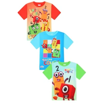Numberblocks Boys Girls 3 Pack Kids T Shirts Childrens Multipack Tshirt (6 7 Years) Multicolor