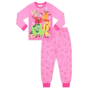 Numberblocks Girls Long Pyjama Set PJs For Kids (5 6 Years) Pink