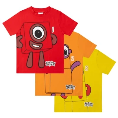 Numberblocks Unisex 3 Pack 100% Combed Cotton Short Sleeved T Shirts Tops 6 7 Years 122cm Multicoloured