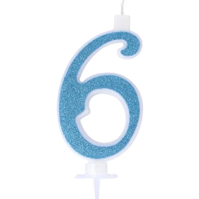 Numeral Candle Glitter Light Blue No. 6