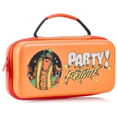 Bright and bold digitally printed design featuring colourful Fortnite Party artwork with fan-favourite characters Durable hard shell exterior provides tough protection against drops, bumps, and everyday damage Compatible with both Switch and Switch 2 consoles, includes EVA insert for original model Mesh pocket holds up to 10 game cartridges, plus space for small accessories and charging cables Comfortable rubber handle with reinforced webbing makes it easy to travel with your console, Platforms: Nintendo Switch 2