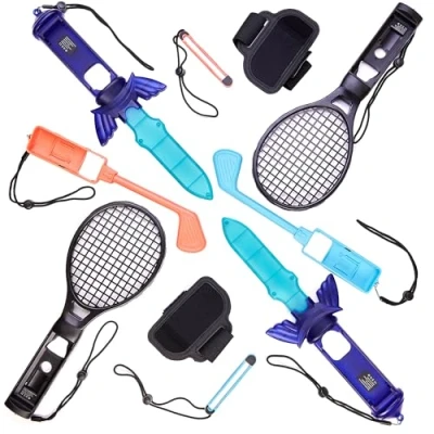 Complete 10-in-1 sports accessory set designed for immersive Switch 2 gameplay Includes 2 golf clubs, 2 tennis rackets, 2 swords, 2 wrist straps, and 2 arm and leg bands Crafted for comfort and control, with ergonomic grips for longer, more accurate play Designed for a snug fit with Switch 2 Joy-Con controllers for secure in-game movement Ideal for use with motion-based sports titles to bring tennis, golf, swordplay, and more to life, Platforms: Nintendo Switch 2