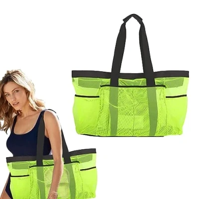 Nupaque Mesh Pool Bags And Totes Oversized Beach Bag Lightweight Bag, Large Towel With 8 Pockets, Nylon External Zipper BagFor Your Family Trip