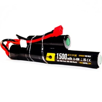 STATS - Li-Ion | 11.1v | 1500 mAh | 20C/40C @ 30A/60A (Cont/Burst) - Airsoft AEGs use the "Burst" flow rate to start the motor, and then the "Cont" flow rate to provide continuous discharge (check your owners manual to ensure the battery purchased meets the minimum flow rate (C) of your AEG) - this battery provides approximately 3 minutes of continuous discharge before running flat LITHIUM ION - Li-Ion batteries have an excellent size/weight to capacity ratio, allowing you to fire more shots with a smaller battery. Li-Ion batteries have a long lifespan and can undergo 1000s of charging cycles. Li-Iono batteries MUST be charged with a Li-Ion Balance Charger NUNCHUCK - this battery is split to help find its place in small battery compartments. Commonly fitted inside the buttstock of rear wired Airsoft Replicas where the buffer tube is not hollow (example EBB - Electric-Blow-Back AEGs). Also for fitting around the barrel, within the fron handguard of front wired Airsoft Replicas. Always check the dimensions of the battery vs the battery compartment to ensure compatability DEANS (T) - this battery is suitable for Airsoft Replicas using a Deans (T) battery connector QUALITY CONTROL - NP Power batteries are produced at an ISO 9000 Quality Control accredited manufacturing plant and shipped at an optimal charge rate of ≥60% to protect against degradation when in transport/ storage