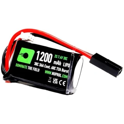 STATS - LiPo | 7.4v | 1200 mAh | 30C/60C @ 36A/72A (Cont/Burst) - Airsoft AEGs use the "Burst" flow rate to start the motor, and then the "Cont" flow rate to provide continuous discharge (check your owners manual to ensure the battery purchased meets the minimum flow rate (C) of your AEG) - this battery provides approximately 2 minutes of continuous discharge before running flat LITHIUM POLYMER - LiPo batteries have an excellent size/weight to capacity ratio, allowing you to fire more shots with a smaller battery. LiPo batteries can be recharged at any charge level without damaging the overall capacity of the battery. LiPo batteries should not be "run-flat", as this can damage the battery and effect overall charge ability. LiPo batteries MUST be charged with a LiPo Balance Charger. LiPo batteries should always be charge in a fire-retardant Safe-Charging-Bag PEQ15/ Battery Box - this battery is designed to fit within externally mounted battery boxes. Always check the dimensions of the battery vs the battery compartment to ensure compatability MINI TAMIYA - this battery is suitable for Airsoft Replicas using a Mini-Tamiya battery connector QUALITY CONTROL - NP Power batteries are produced at an ISO 9000 Quality Control accredited manufacturing plant and shipped at an optimal charge rate of ≥60% to protect against degradation when in transport/ storage