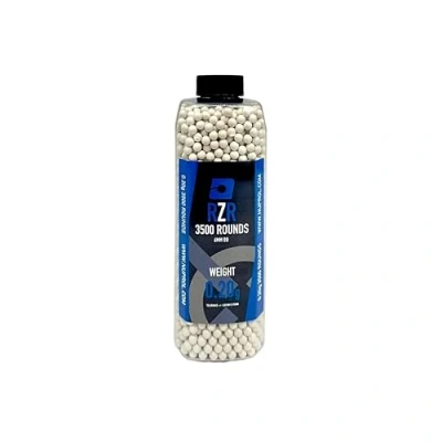 IMPROVE YOUR GAME – triple polished and manufactured at 5.95 mm with a low tolerance of (+/- 0.01 mm), you can expect improved flight performance and reduced feeding issues with RZRs premium quality BBs QUALITY CONTROL – using quality ammunition is essential to your performance on the field. RZR BBs undergo multiple QC checks throughout the manufacturing process, ensuring a tier-1 Airsoft BB TRIED & TESTED – with over 1 BILLION (1,000,000,000) individual RZR BBs purchased and fired by Airsoft Enthusiasts across the globe, you can feel confident in your choice of ammunition LIGHTWEIGHT (0.20 – 0.28g) – Lighter weight BBs provide the best £/shot ratio. They will travel at faster speeds but due to their light weight, are susceptible to windy conditions. This makes them perfect for CQB engagements and players ensuring ‘accuracy by volume’. For improved accuracy & range, consider a heavier weight BB HIGH DENSITY POLYMER – Constructed of a dense polystyrene with heavier weight BBs using natural, non-toxic & non-ferrous materials to increase their mass. RZR Standard BBs are of a premium quality with excellent performance ensured