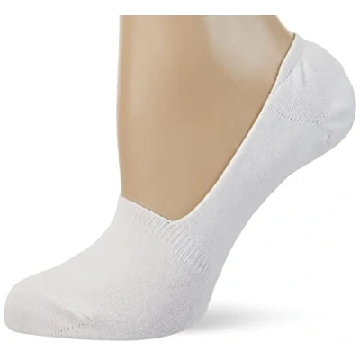 Nur Die Women's Pack of 2 Cotton, Invisible Short Socks, Non Slip with Silicone on The Heel, White, 35 38
