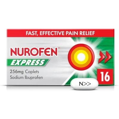 This product is quantity restricted and a maximum of 2 products containing paracetamol, aspirin or ibuprofen can be bought per week per customer. Fast, effective pain relief Contains sodium ibuprofen Relieves: headaches, tension headaches, migraines, back pain, muscular and rheumatic pain, body aches and pain, dental pain, period pain, cold and flu symptoms and fever Nurofen Express 256 mg Caplets; contains sodium ibuprofen; for pain relief; always read the label-UK/N/1118/0128 Brandbank to provide Brandbank to provide Brandbank to provide Brandbank to provide Brandbank to provide