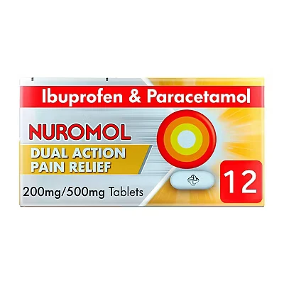 POWERFUL PAIN RELIEF, FOR WHEN REGULAR PAINKILLERS ALONE AREN'T ENOUGH* - Nuromol releases both ibuprofen and paracetamol faster than separate tablets of standard ibuprofen and paracetamol together NUROMOL DUAL ACTION: FAST ACTING, LONG LASTING PAIN RELIEF - Nuromol combines ibuprofen and paracetamol for pain relief that starts to absorb in 5 minutes and lasts up to 9 hours UK'S 1ST PAINKILLER TO COMBINE THE POWER OF IBUPROFEN AND PARACETAMOL IN ONE TABLET - Starts working faster than standard ibuprofen and lasts longer than standard paracetamol alone for pain relief** POWERFUL PAIN RELIEF - SUITABLE FOR HEADACHE, MIGRAINE, JOINT PAIN, MUSCULAR PAIN, DENTAL PAIN, PERIOD PAIN NUROMOL, FROM THE MAKERS OF NUROFEN - Nuromol is manufactured by the same company that makes Nurofen *Ibuprofen or paracetamol; Nuromol Dual Action 200mg/500mg Pain Relief Tablets; Contains ibuprofen & paracetamol; For pain not relieved by ibuprofen or paracetamol alone; Always read the label