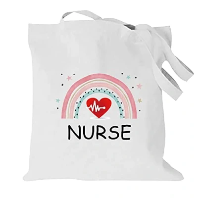 Nurse Printed Canvas reusable grocery Bags, Foldable Casual Travel HandBag, Shoulder Beach Tote Shopper bag eco friendly super strong washable Storage bags Shopping for Women