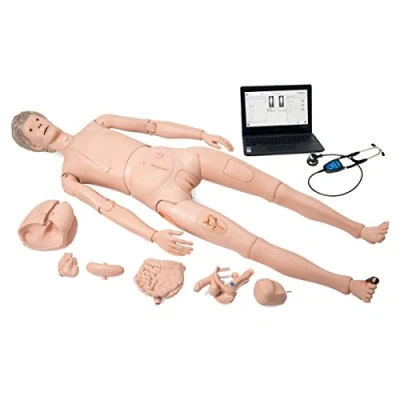 Nikki the Nursing Manikin with Auscultation offers 11 anterior and 4 posterior auscultation sites with 42 high quality sounds powered by Cardionics – the Leader in Auscultation Simulation. The manikin simulates an adult, life-size patient and is made of durable, unbreakable, and water-resistant plastics for longevity in the everyday training use. It is a great option to practice scenario-based simulation. The manikin can be set up both as a male or a female patient thanks to interchangeable genitals and organs and can be positioned like a real patient with natural movement of the arms, legs, and joints. Nikki can even sit upright in the bed for treatments and examinations, making it the ideal training solution for bedside competencies. Comes with the NursingScope Auscultation Training Stethoscope powered by Cardionics, which is a wireless electronic simulation-training stethoscope for auscultation training purposes or objective structured clinical examinations (O.S.C.E.). Includes a controller software delivered on the tablet that gives instructors access to the large high quality sound library from Cardionics. Instructors can select and change any of the physiological and pathological sounds that the trainees will hear through the NursingScope once they place the stethoscope on one of the auscultation sites of the manikin.