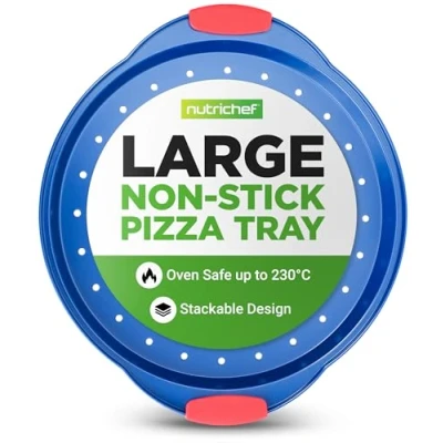 CRISPY, EVEN BAKING: This 33cm pizza tray features perforated holes for improved airflow, ensuring a crisp crust and evenly cooked base; A great alternative to a traditional pizza stone for oven or baking stone HIGH-QUALITY PIZZA STEEL: Made from durable carbon steel with a premium non-stick coating, this pizza steel for oven is built to last; good for baking pizzas, cookies, and flatbreads ERGONOMIC and SAFE: The pizza pan includes oversized silicone grip handles for safe, easy handling; Oven-safe up to 230°C, it's suitable for everyday use in any kitchen FOOD-SAFE BAKEWARE: Free from PFOA, PFOS, and PTFE, this baking steel pizza tray ensures healthier baking; Designed for use in all standard UK ovens EASY TO CLEAN and STORE: Lightweight at just 590g, and sized at 37.6 x 33 x 2.5 cm, this pizza tray fits neatly in cupboards and is dishwasher safe for hassle-free cleaning